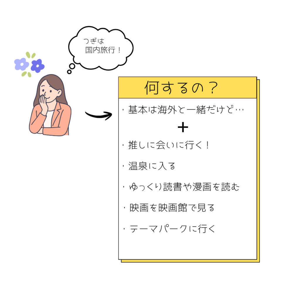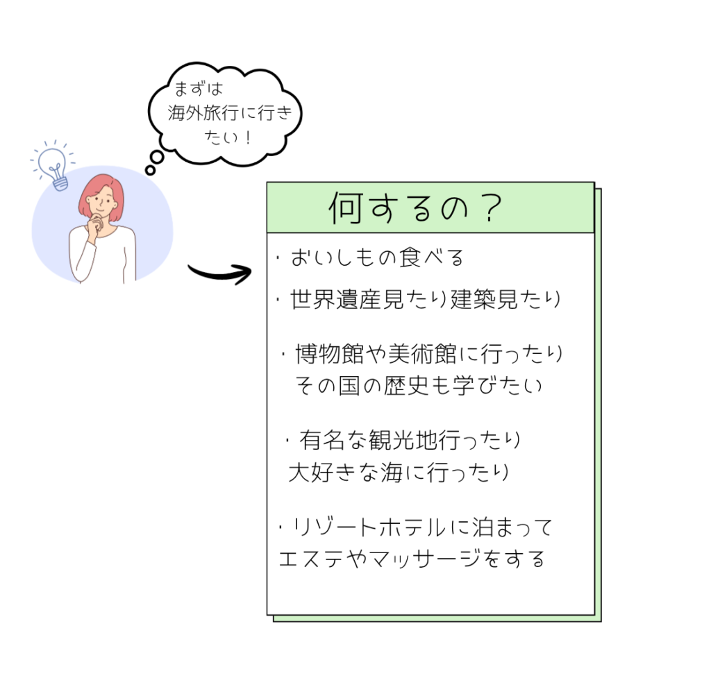 例えば、私の場合「海外旅行に行きたい」という気持ちはありますが、すぐに行けるわけではありません。